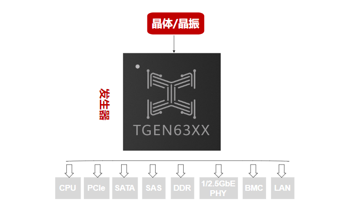TGEN6320 3.3V 晶体/晶振 LP-HCSL 25MHz或100MHz <50fs 19 -40℃~85℃ QFN100